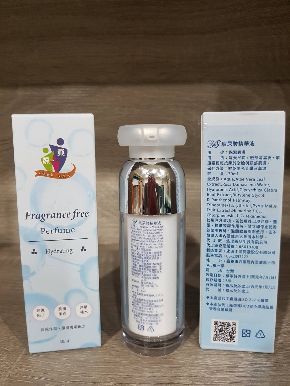 精華液:玻尿酸精華液,內含玻尿酸、古拉索蘆薈及維他命原B5等成份。